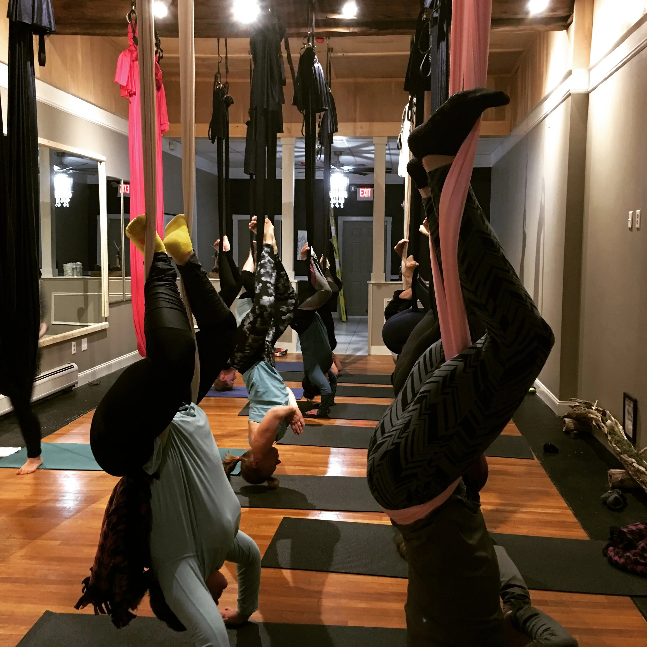 If you are new to Aerial Yoga or have been away from your practice for a while, we recommend that you start with our 4 week Foundations of Aerial Series on Wednesday evenings at 6:45 PM. This series moves in a sequential manner - starting with the most basic then moving into more challenging poses over the course of the month. By the end of the course, you will understand safety precautions, inverting and climbing techniques, and many foundational Aerial Yoga postures.